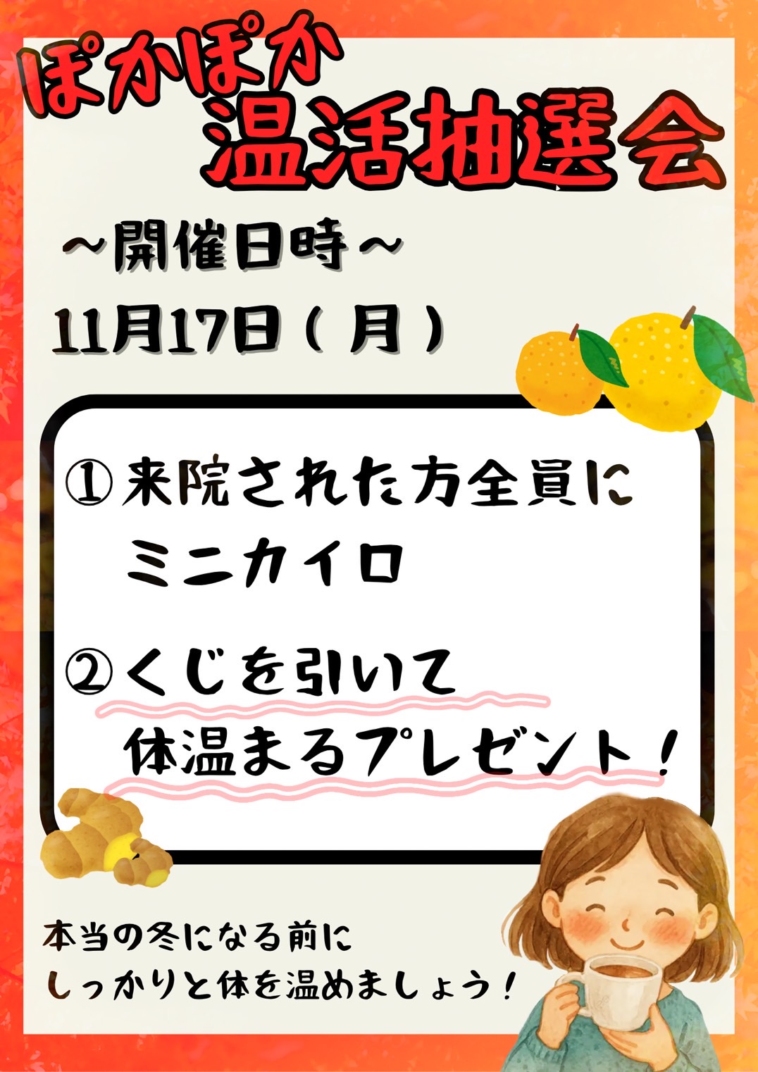さらに、くじを引いて【体が温まるプレゼント】が当たります!!