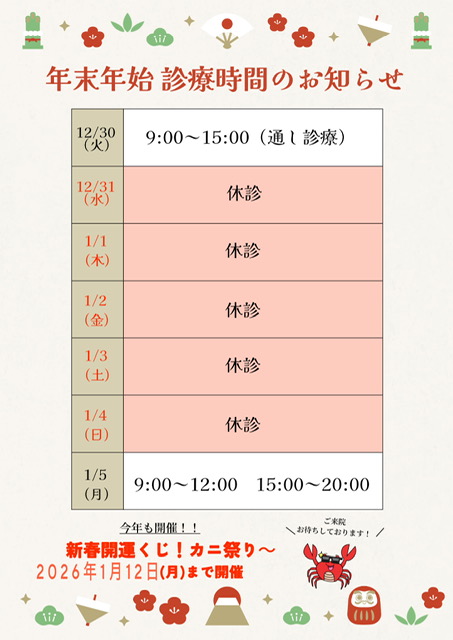 年末年始も、皆さまのご来院を心よりお待ちしております。